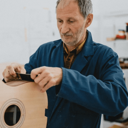 Our workshop is a cozy place full of charm where also new guitars are being built by Tony, a local well-seasoned woodworker.