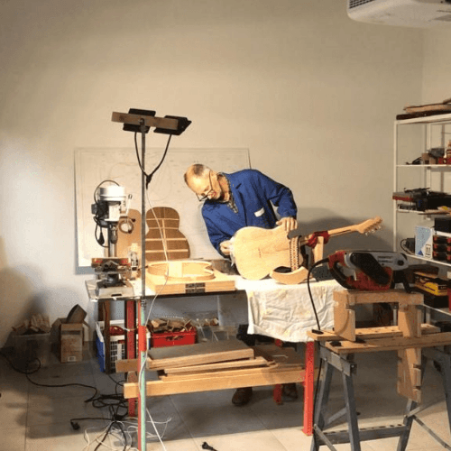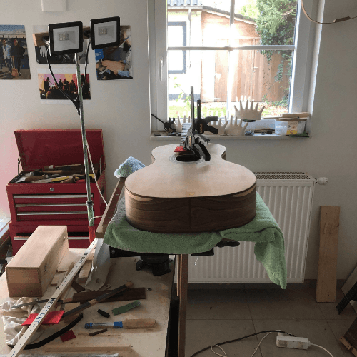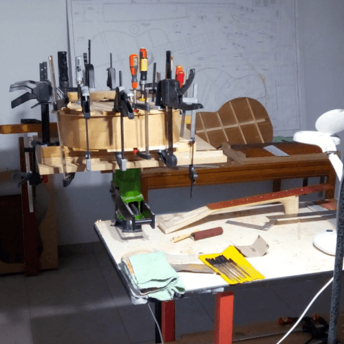 Our workshop is a cozy place full of charm where also new guitars are being built by Tony, a local well-seasoned woodworker.